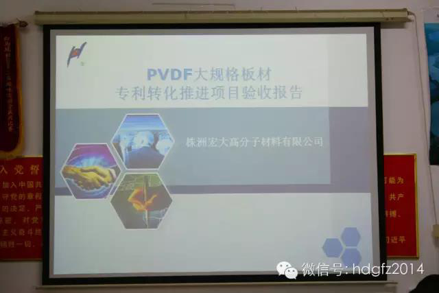 2016年2月26日,湖南省經濟和信息化委員會、湖南省知識產權局,株洲市經濟和信息化委員會在株洲宏大高分子材料有限公司進行由我公司承擔的2015年度“百項專利轉化推進計劃”重點專利技術轉化項目“高功能新型高分子聚偏氟乙烯(PVDF)板材”的現(xiàn)場驗收,驗收委員會聽取了我司所作的匯報,審閱了有關資料,考察了生產現(xiàn)場。