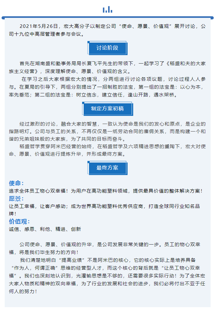 升華使命、愿景、價(jià)值觀,為員工物心雙幸福而奮斗!