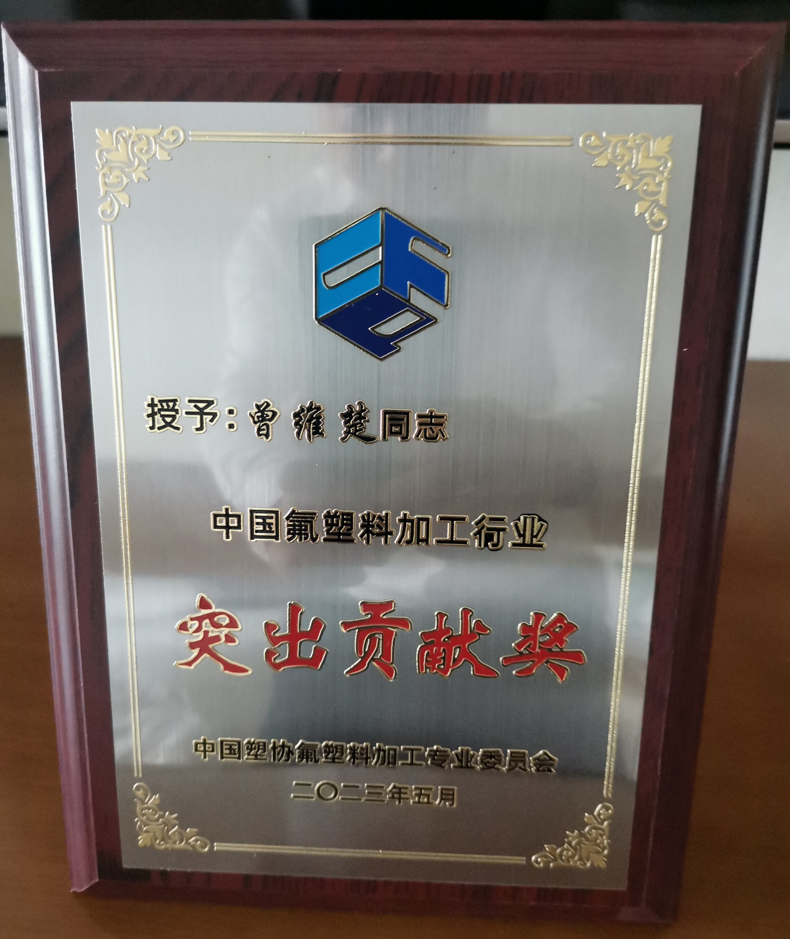 董事長(zhǎng)曾維楚先生榮獲”中國(guó)氟塑料加工行業(yè)突出貢獻(xiàn)獎(jiǎng)“